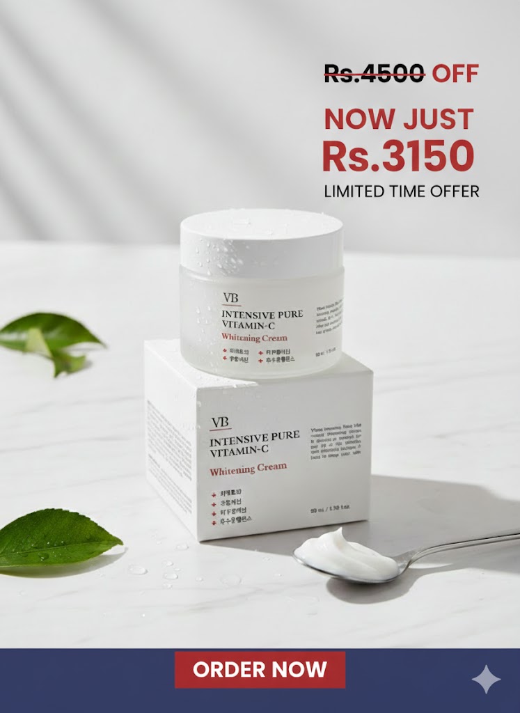Yeh VB (VIBAS) Intensive Pure Vitamin-C Whitening Cream hai. Yeh ek Korean skincare product hai jo skin ko chamakdar banane aur jhurriyon (wrinkles) ko kam karne ke liye banaya gaya hai.